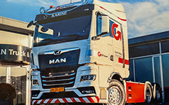 Da den fireakslede var handlet, så ringede Ejvind til Leif Tullberg og begyndte at køre for DSV. Sådan har det været siden, dog med den lille krølle, at det i dag er DSV Transport, og ikke det ”blå” DSV, Ejvinds lastbiler kører for. Da vi altid har ønsket at have en tæt kommunikation med de mange vognmænd vi samarbejder med, så blev der for 15 år siden dannet en mindre vognmandsgruppe, der ville være en form for bindeled mellem alle vognmændene og hovedkontoret. Da små udfordringer kan vokse sig store, når bølgerne går højt i en presset hverdag, er vognmandsgruppen en vigtig og værdsat gruppe vognmænd, der mødes fire gange årligt med ledergruppen hos os og der får vi en god og givende dialog. Ejvind har været med fra starten, men giver nu stafetten videre og vi vil her takke for indsatsen og de mange timer der er lagt i opgaven de sidste 15 år.